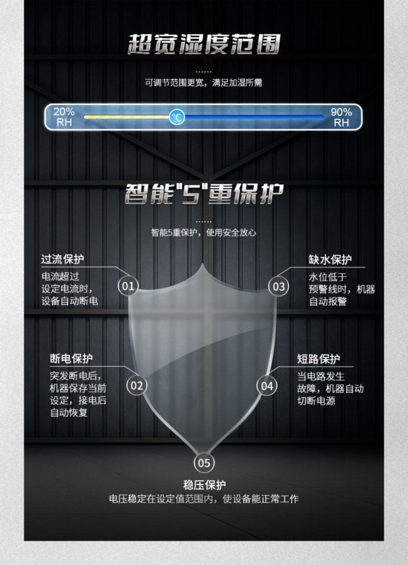 ·操作簡單,缺水自動報警·特有濕度與故障顯示功能
